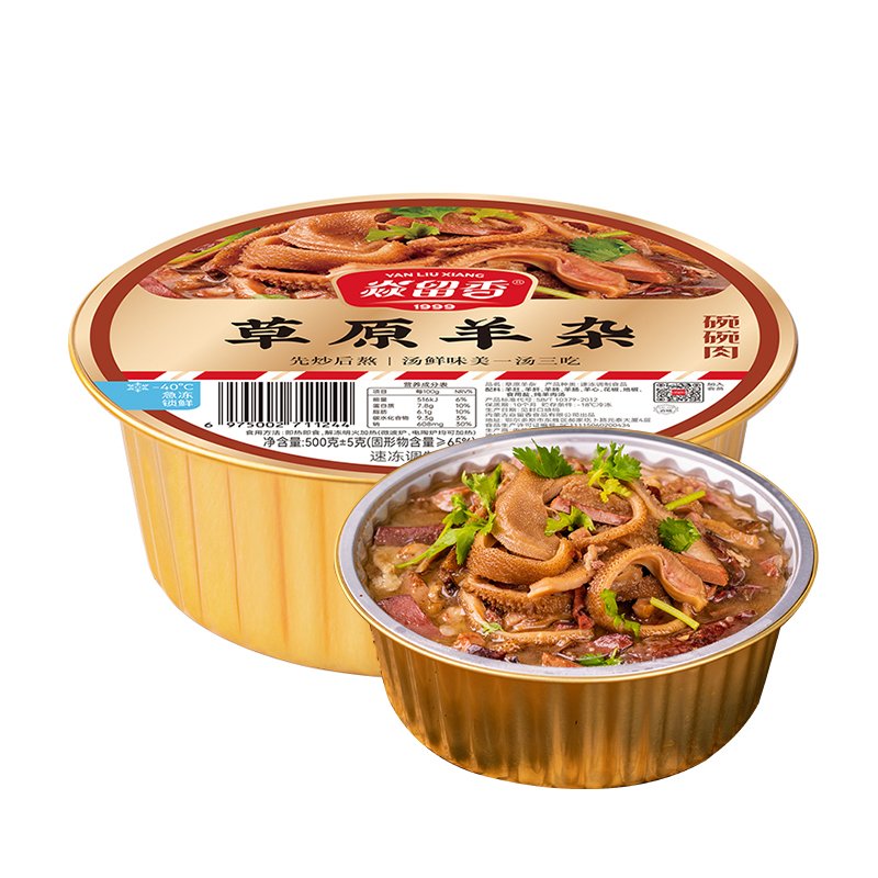焱留香草原羊雜選取阿爾巴斯山羊的肺,心、肝、肚、腸所制成的,這些部分統(tǒng)統(tǒng)必不可少,加上當(dāng)?shù)丶t蔥,地椒,大火燒開,小火慢燉,出鍋后切成碎丁或薄片,羊雜就是要“雜”且“碎”,不雜不碎喝起來沒味。羊雜放入鍋中,用文火熬燴,還可再加上一些粉絲、粉條。食用時可按個人口味和喜好,加一點辣椒、香菜、蔥絲、姜粉等調(diào)味,在泡一碗米飯進(jìn)去那真是絕了!