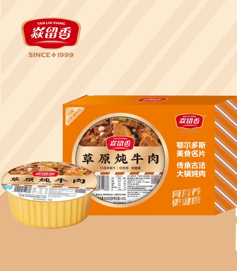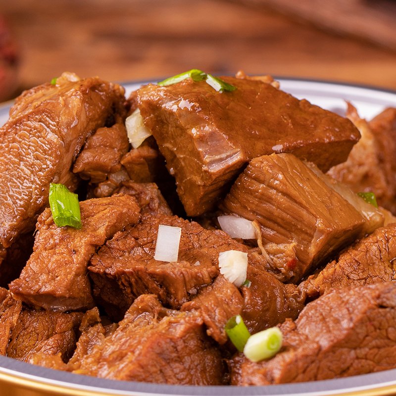 焱留香草原燉牛肉精選鄂爾多斯烏審旗小紅牛肉,脂肪含量少,肉質(zhì)柔軟,所含較多肌腱,鹵燉后能夠產(chǎn)生豐富的膠質(zhì)感,香濃入味。